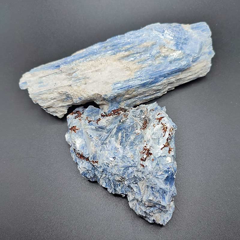 Coppia di minerali da collezione di Cianite Azzurra con striature di colore e cristalli ottimamente definiti. Provenienza miniera presso Minas Gerais – Brasile.